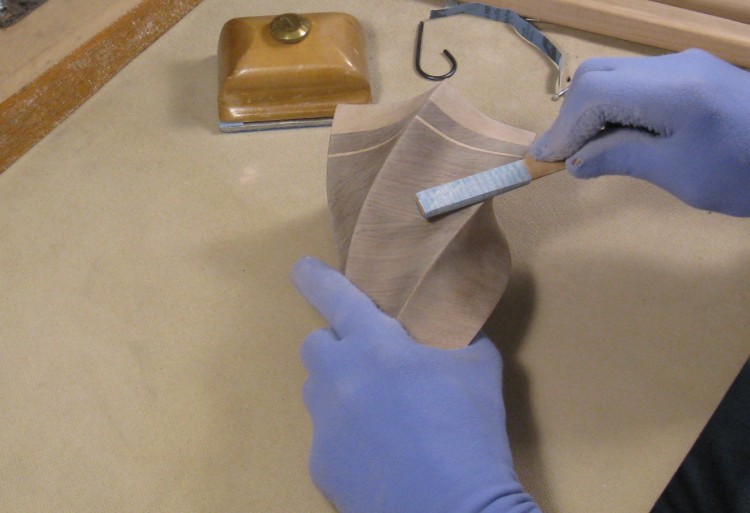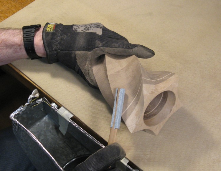 The edges needed one final shaping cycle. They were pretty thin at this point so I just sanded enough off to get to a curve that was nice and even to the eye all along the edge.