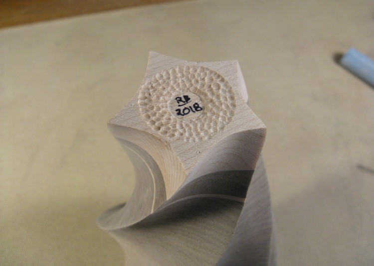 Also visible here in the "valleys" are the guide lines drawn on to help get a consistent twist between each layer.