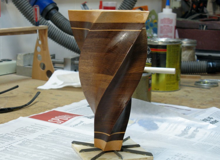 After pulling out the rod (which despite the wax actually involved a hammer, a vise and much "convincing"), the bottom was glued on and the vessel blank was complete.
