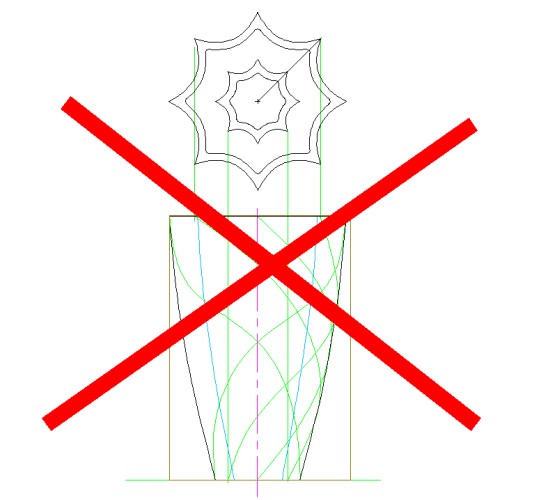 Now I could think about refining the curves a bit. Here the approximate center of each edge is being marked, to provide a target for extending the curved portions.