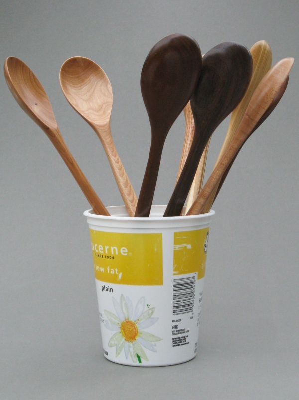 I'd made a number of wooden spoons last year and the unused/unclaimed ones were languishing in the basement, stored in a plastic yogurt container. I was looking for excuses to do some turning so making a nicer version of the yogurt container seemed like a fine idea.