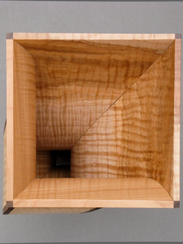 I had been thinking about unconventional vessels and this one evolved out of that process. It's a constructed piece rather than turned or carved - more like a box in that way but definitely a vessel by it's shape.