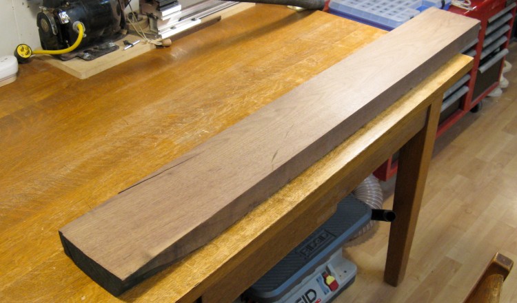 Available board widths are usually limited to 6 or 8 inches, so to have enough wood I bought a 2"-thick piece (known as 8 quarters or 8/4 in woodworking parlance). As in:
