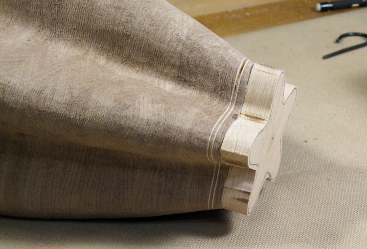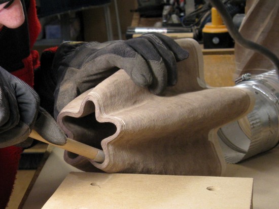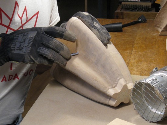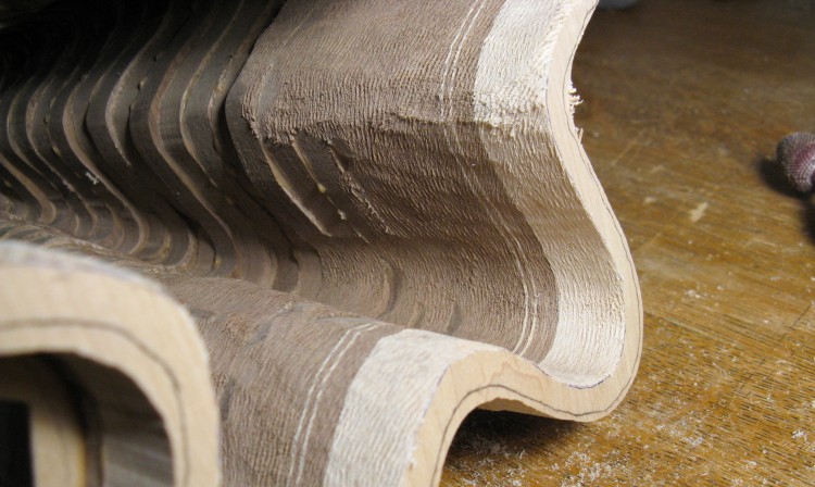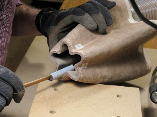 However, after a few hours, the inside shaping was done, resulting in the scabrous rolling surfaces seen here. This was gonna need some serious sanding.