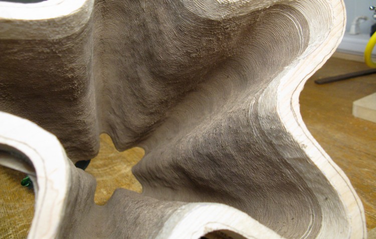 The shaping was done in a relatively short time and the exterior surface now looks a lot like the moonscape of the interior.