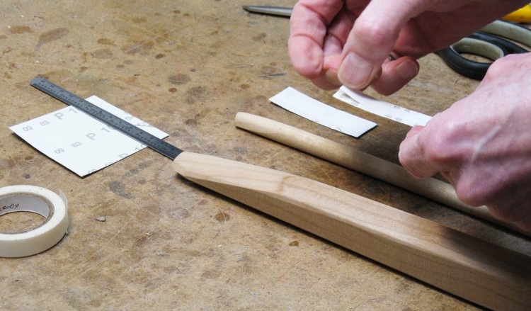 I made a couple of wooden jigs as shown here onto which I taped strips of sandpaper, starting with 100 grit.