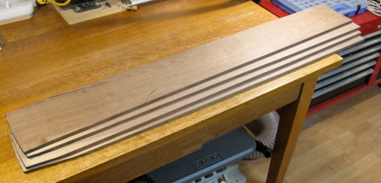 A few of the walnut layers near the top and bottom needed to be thinner than the rest, so I ran them through the planer to get to the desired thickness.