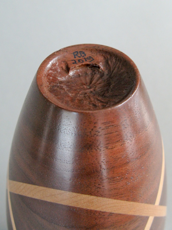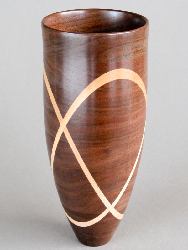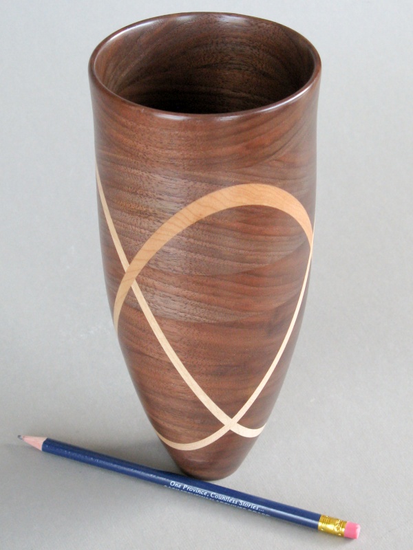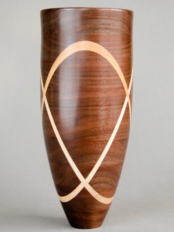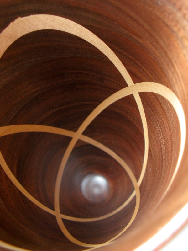 A slice-and-fill piece is something that I've thought for a long time that I should try, but the impetus was never quite high enough to push it along. I finally had enough time and no other pressing projects, so that let me indulge this thought with what you see here. I call it a trefoil due to the three intersecting rings that circle it, in a similar manner to the