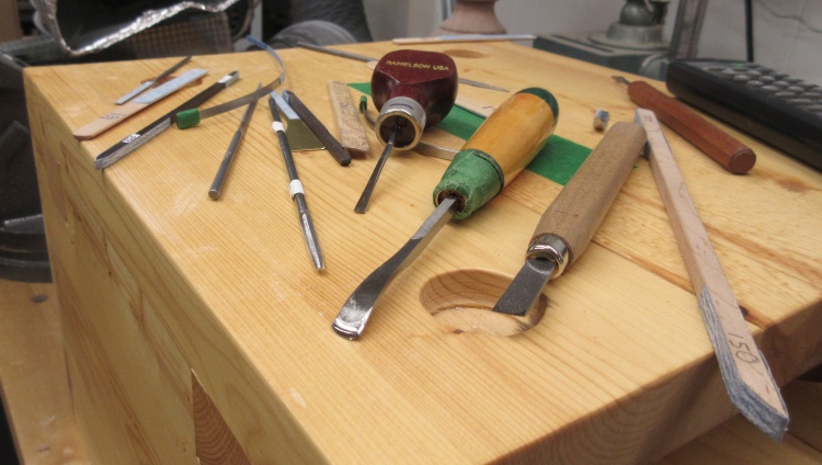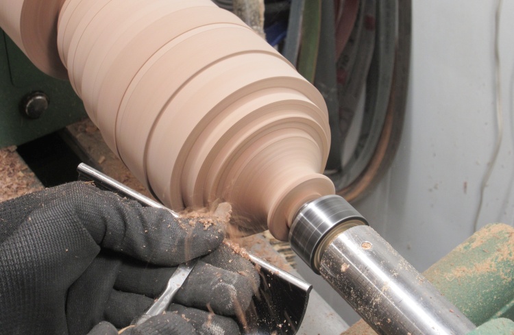 Once all the reference diameters were cut, I removed much of the excess wood with this beefy chisel tool.