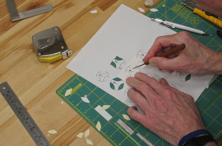 A bit of manual cutting after that with a utility knife did the rest of the pattern, including a small window in the center to enable alignment of the center lines with those on the vessel.
