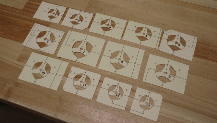 This shot shows the 13 different-sized patterns that would be needed.