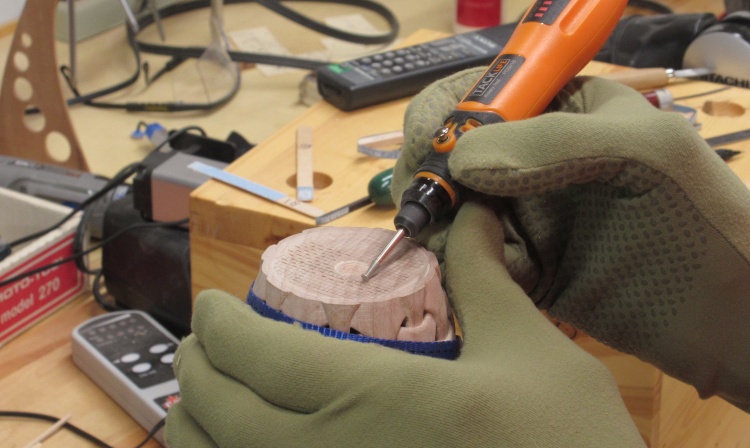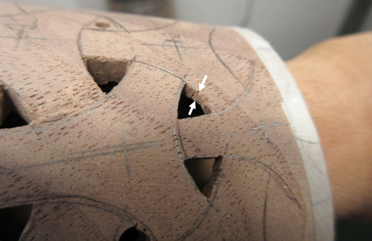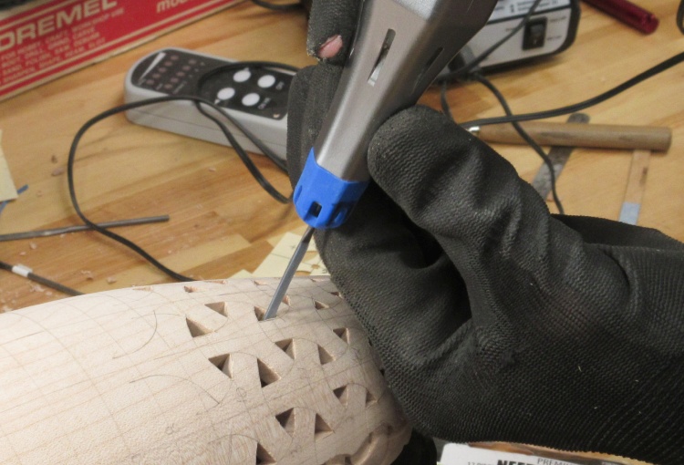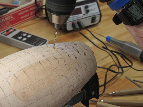 I traced a few patterns on the vessel near the bottom where I was worried about the thickness and started making some holes.