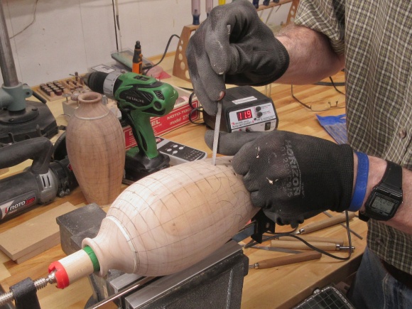 Hollowing the maple vessel