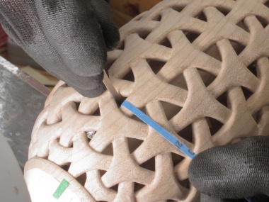 The (mostly) 220 grit sandpaper on the small jigs didn't last long either and I'd need to get a fresh section (usually by unsticking and moving a strip) after five or 10 seconds of sanding. That helped account for why it took around seven weeks to do all the shaping and sanding.
