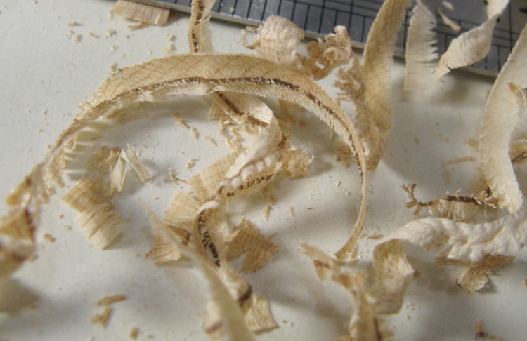 These are typical of the shavings coming off when using the bowl gouge. These had shot a couple feet over to land on the drill press table.