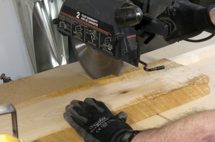 I grabbed some "eight quarters" maple and cut off a generous chunk on the radial arm saw.