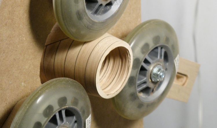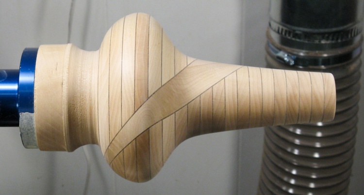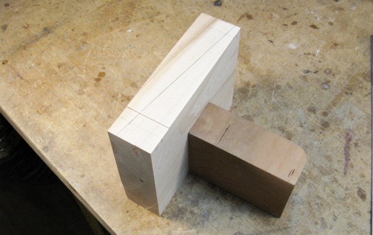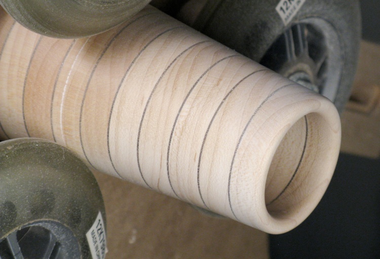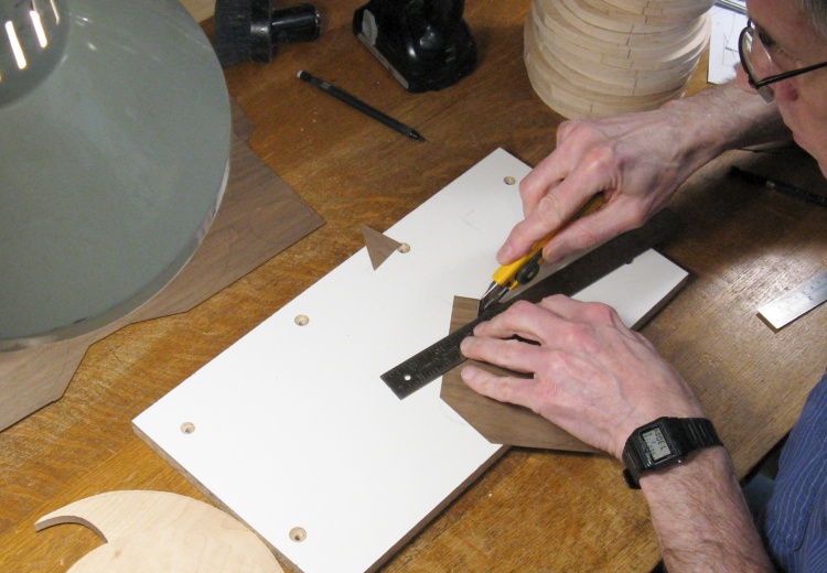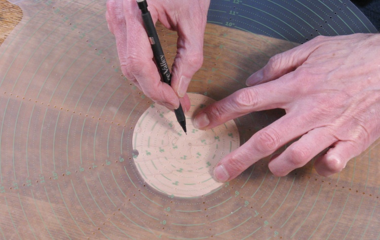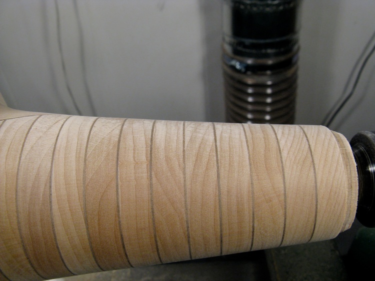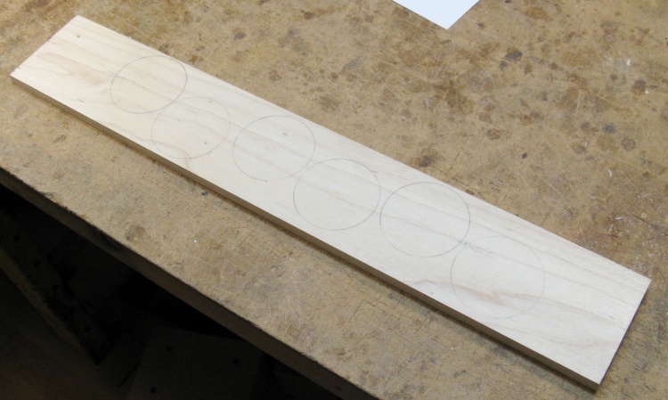 This shot shows a new piece of maple, already planed to the appropriate thickness with the five layer circles marked.