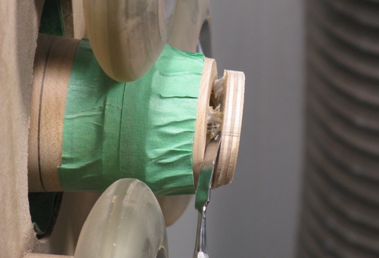 The faceplate was pulled off in preparation for removing the extra bottom wood.