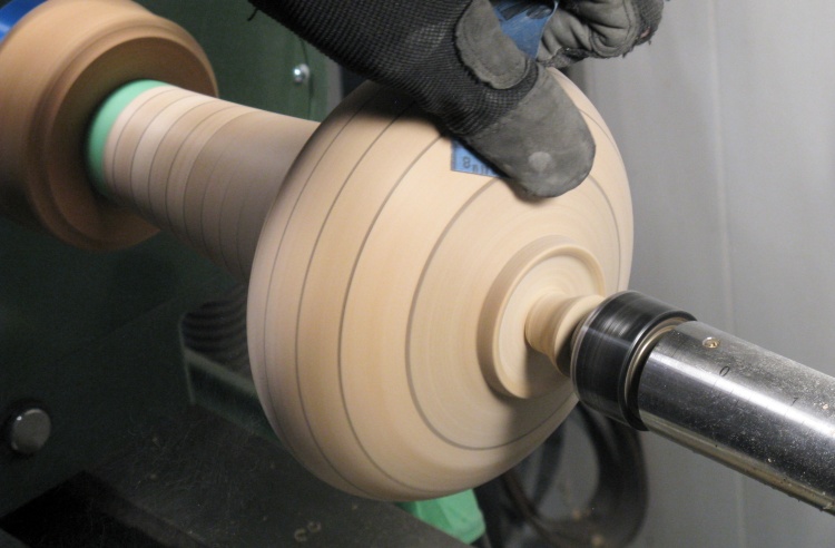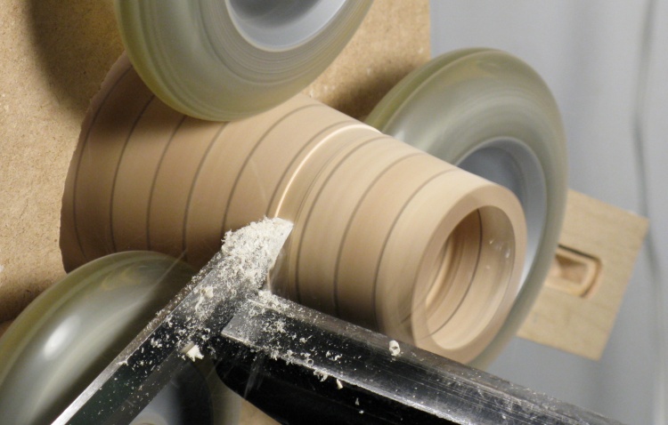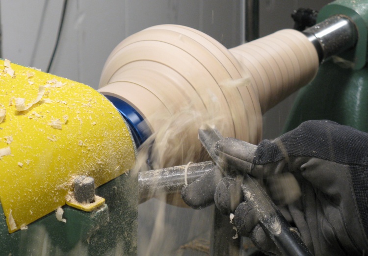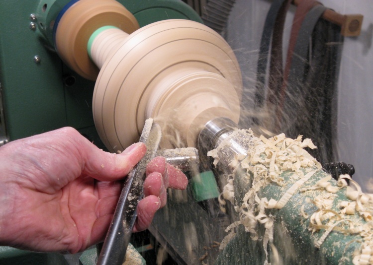 Shaping went pretty quickly using the bowl gouge seen here. In this shot it is already mostly done and the bottom profile is just being adjusted a bit more.
