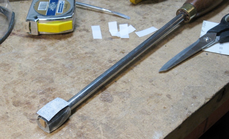 The tool has a set screw holding the cutter shaft on a flat section, but the flat section was not in the correct spot. Not sure why this was never a problem before. At any rate, a minute with a file and the problem was corrected. Which just left the vessel to deal with.