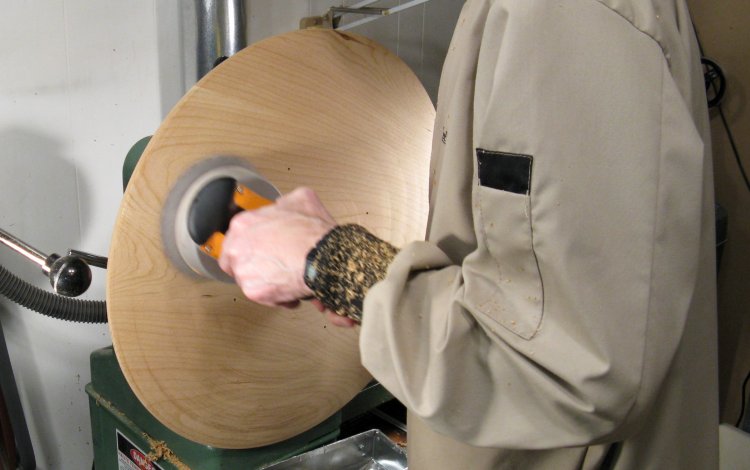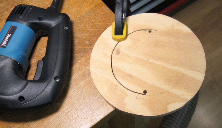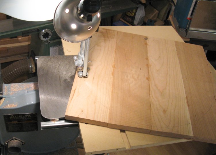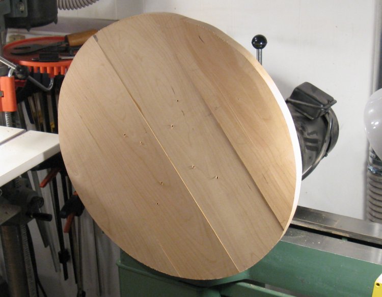 The panel had an appropriate-sized circle marked on it and then was cut out using the bandsaw.