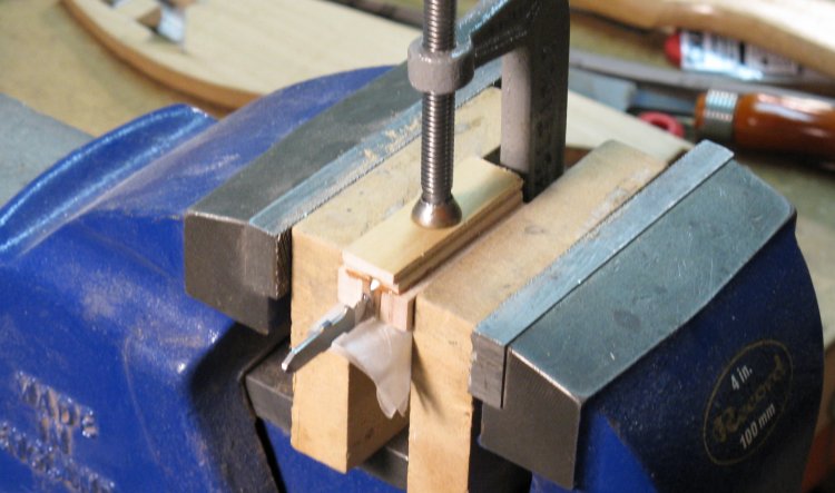 Well, it isn't rocket science so I figured I'd make my own. That way, even if it didn't work there wouldn't be a huge fireball on the launch pad. With that jaunty self-assurance, I assembled an old blade with a thin piece of plywood and some small blocks to provide support.