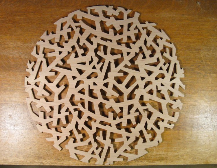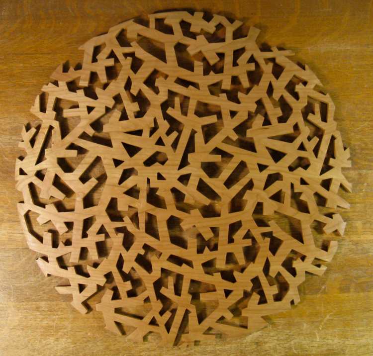 Unlike a fair number of my projects, this one wasn't driven by an actual need - there was no blank wall calling out for a carved panel. However, I had seen a pattern in an interior design shop once and kind of liked it. It seemed to me reminiscent of tree branches in profile, and I thought it might look nice done in wood. I checked out some variations of this design and a few other patterns but none of them tickled my fancy any...um...fancier, so I stuck with this original one.