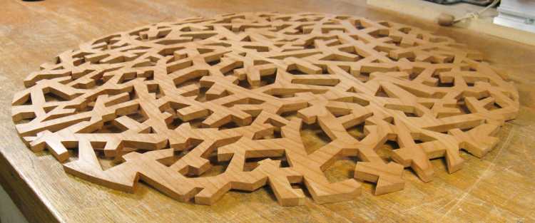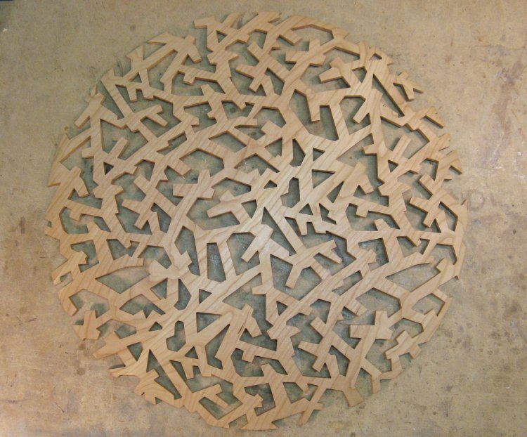 This shows the piece with all the openings cut out and the surface sanded to remove the marks.
