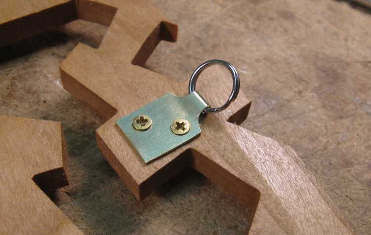 To mount the unit to the wall, I added a little metal loop (a tiny keychail-style ring) using a brass attachment plate. A couple tiny screws holds the plate to a convenient "strut" near the top. A simple nail is used as a hangar, so the mounting mechanism isn't visible from the front.