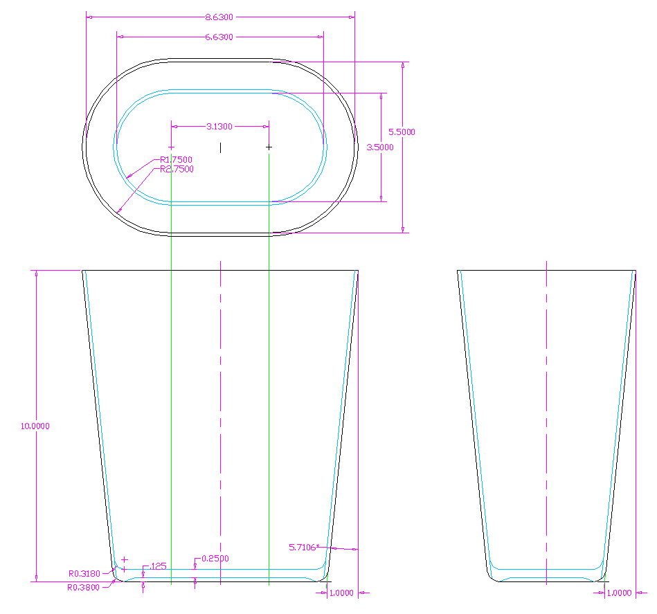 Drawing on the top-to-bottom taper