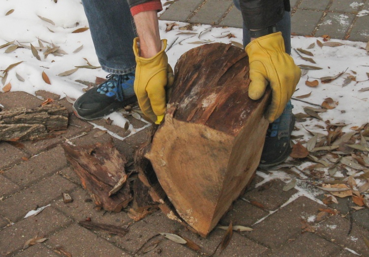 Chopping up a cherry plank