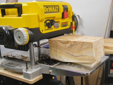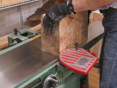 To clean up the cut edges, I employed the jointer on the narrow sides (jointing to a marked line) and the planer on the wide sides (planing the side with the wood propped up at the appropriate angle);
