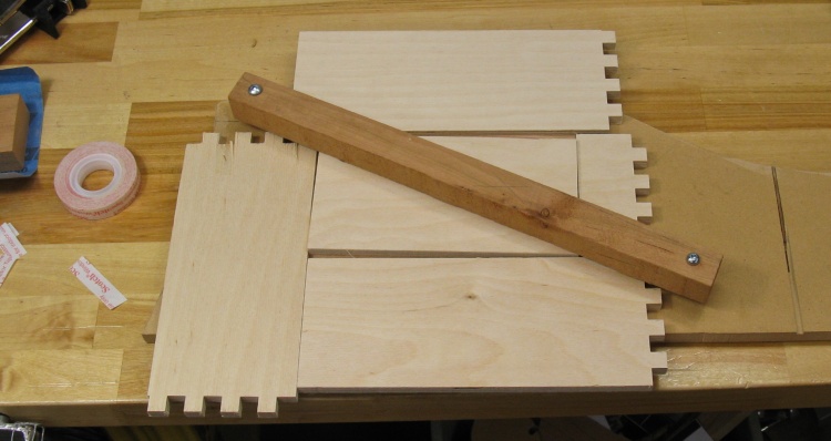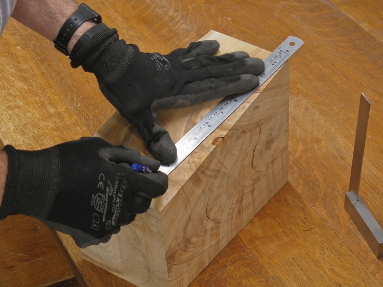 The four sides needed to have a consistent slope where the 10" tall sides tapered down by one inch at the bottom. In this shot I'm marking the slope for one of the sides.