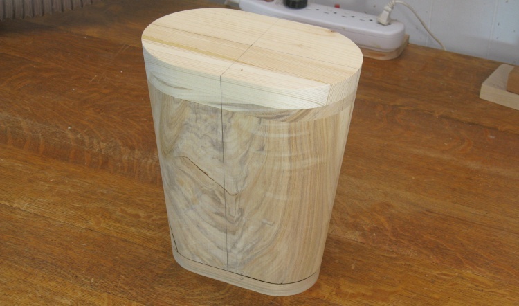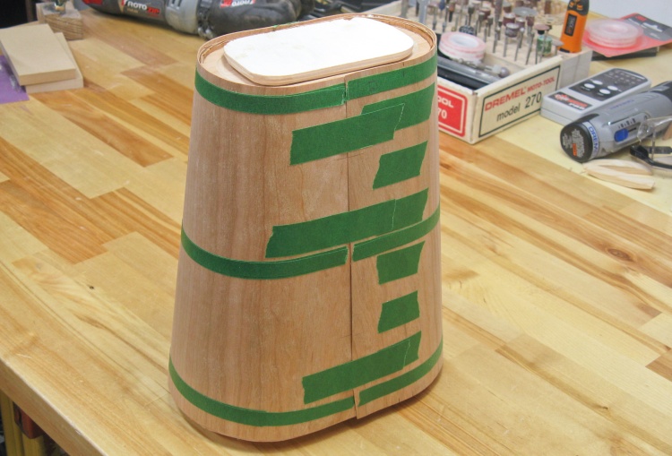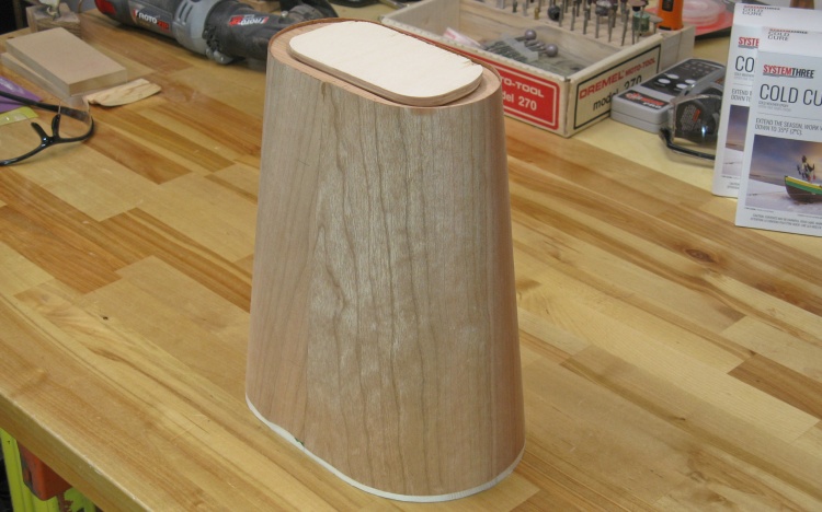Of course after cutting 3/4" off the bottom, the form was shorter and I needed to add another 3/4" piece to the top to maintain the height. It was glued on and then trimmed and sanded flush with the rest of the body.