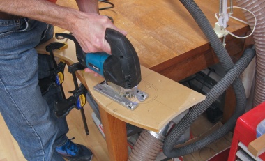 In this photo I'm using the template to make a curved cut corresponding to the bottom profile of the vertical-grain pattern.