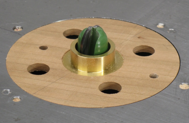 The pattern contacts the brass collar which puts the bit a specific distance from the edge of the pattern. The pattern size was made with this distance in mind to achieve the desired cut.
