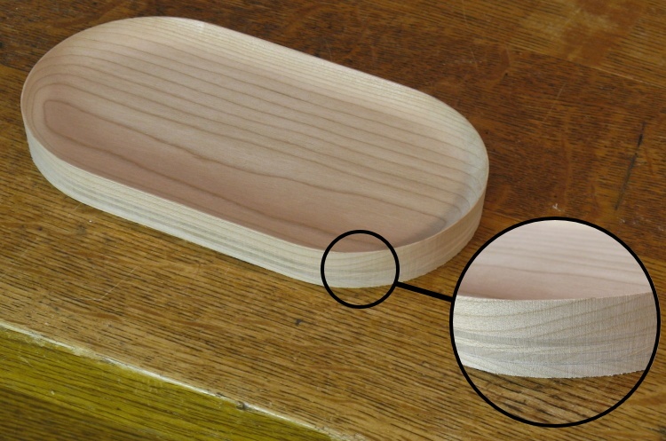 Down at the bottom, the profile of the veneer was rounded and blended with the base using a sanding block.
