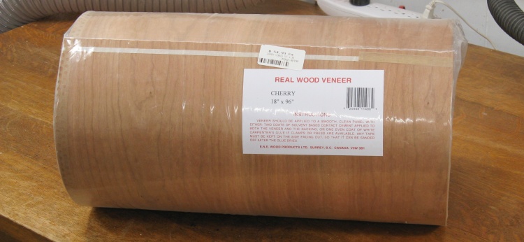 This is the roll of veneer that I planned to use for the wastebasket. I had purchased it for a drawer set some time ago but then managed to later find pre-veneered plywood and used that instead.