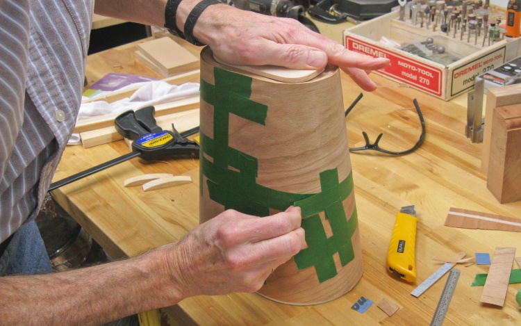 So first I added masking tape on the inside as shown here to keep the veneer pieces together.
