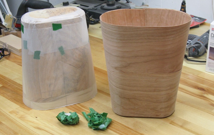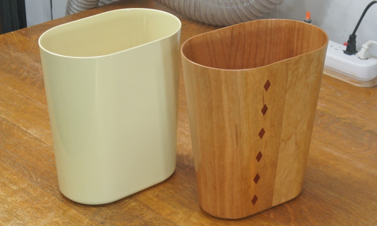 This shows the new wastebasket alongside the one it replaces. It looks like the new one ended up with a bit more side taper than the original but we'll call that "artistic license" since it sounds better than "sloppy measurement".