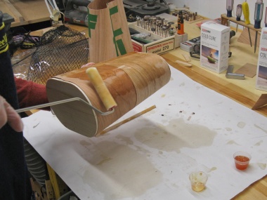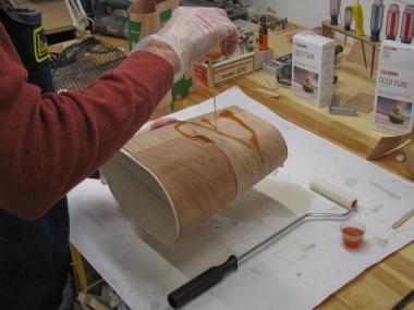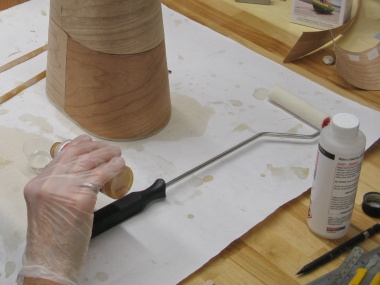 This was then spread over the outside surface of the first layer of veneer using a small roller and the second layer was slid down over top.