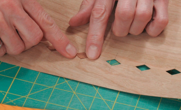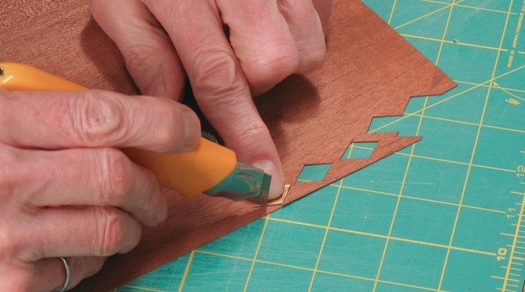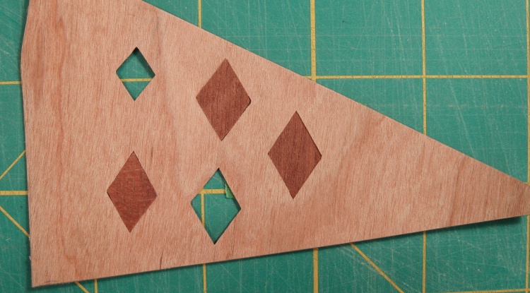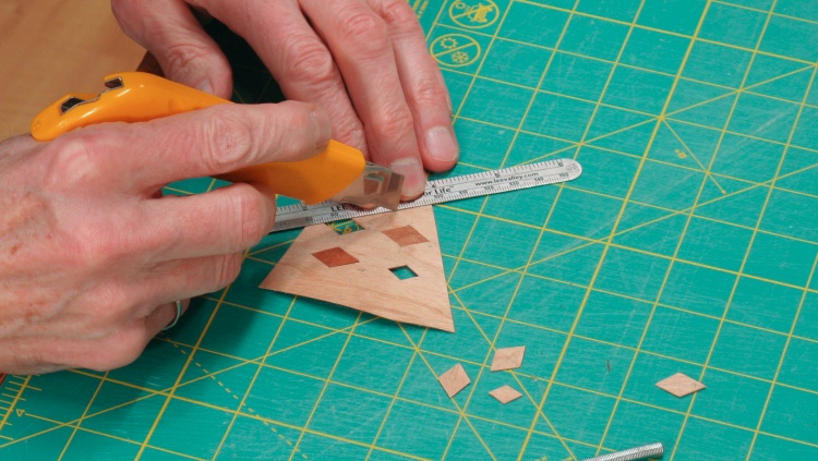 I started by using the pattern to cut out six diamonds from the back of the final veneer layer.