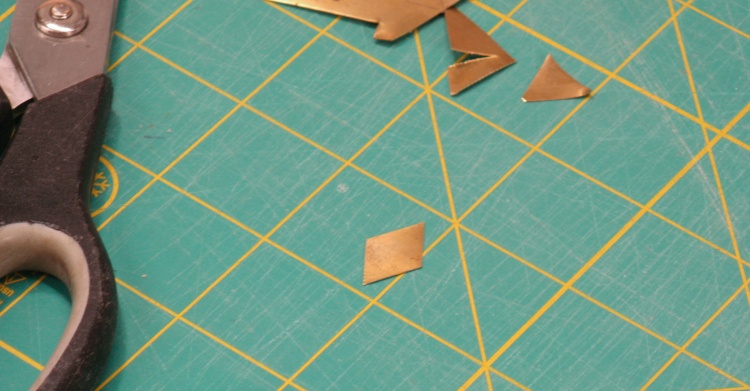 After reading up a bit more on marquetry I noticed one article talking about using a pattern so I thought I'd give that a try. A few minutes of work produced a diamond pattern from 0.007" brass as shown here.
