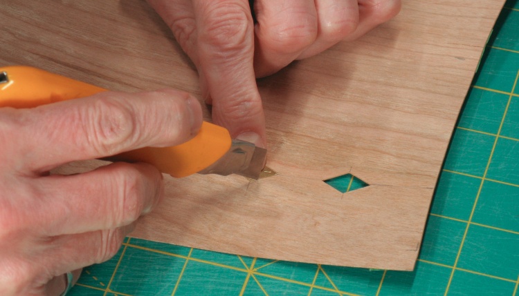 Cutting a hole in the cherry veneer