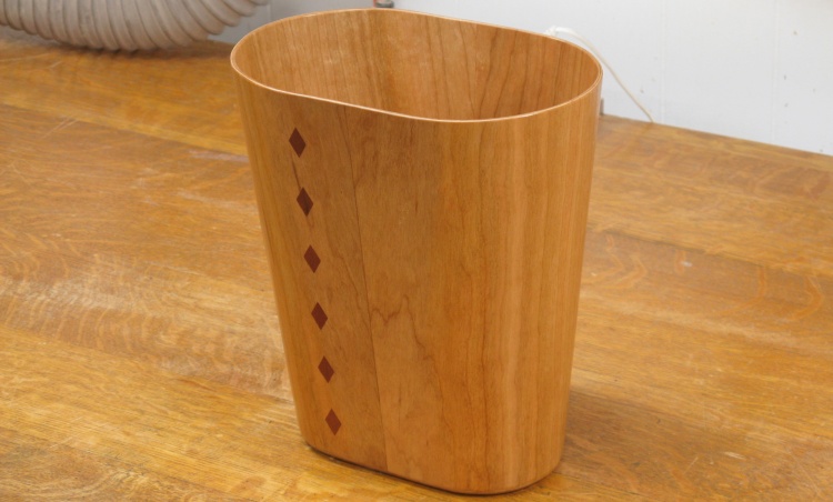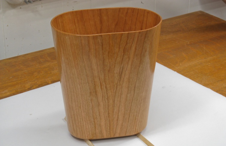 Veneer glued to the wastebasket base