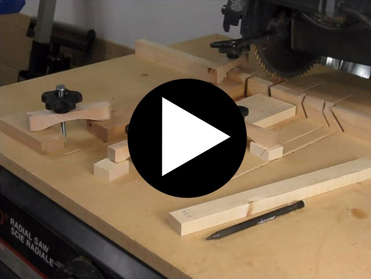 The first thing I needed to find out was whether I could even cut the staves well enough with the equipment I had. They needed to be tapered in two dimensions with shallow angles and have straight and flat-enough surfaces to be able to laminate them together cleanly. The only good choice was the radial arm saw so I started setting that up to check out what it could do.