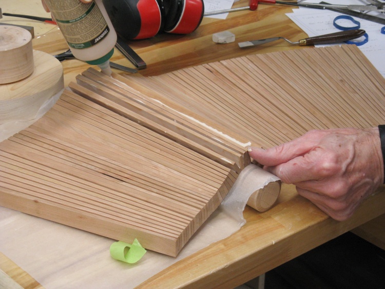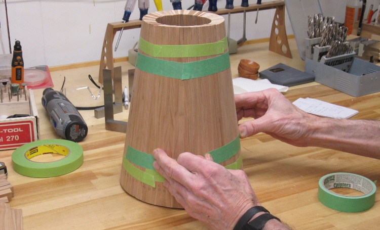I glued the body in groups of 10 or so staves then let those dry before gluing more.