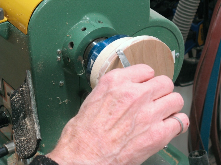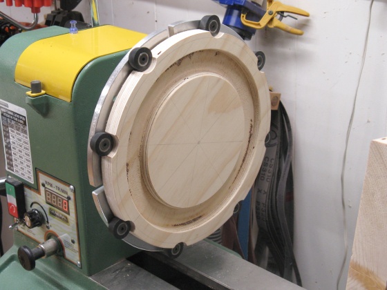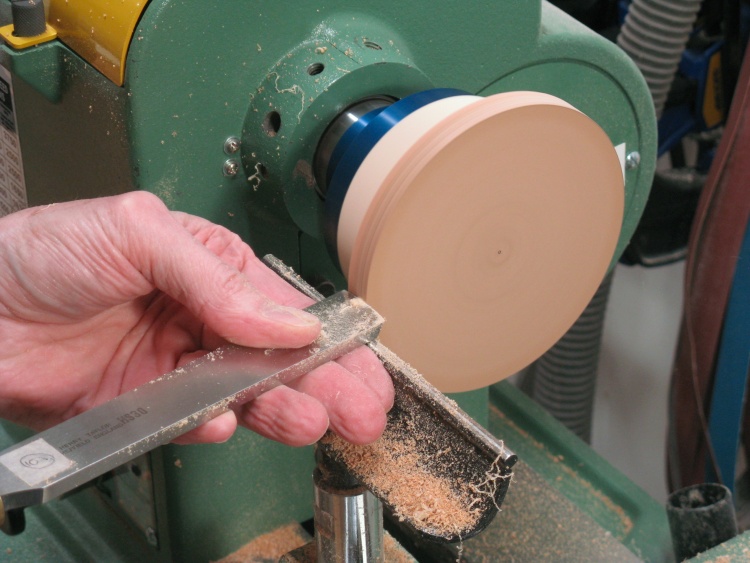 Bottom shaping was started by transforming most of the faceplate disc into sawdust.