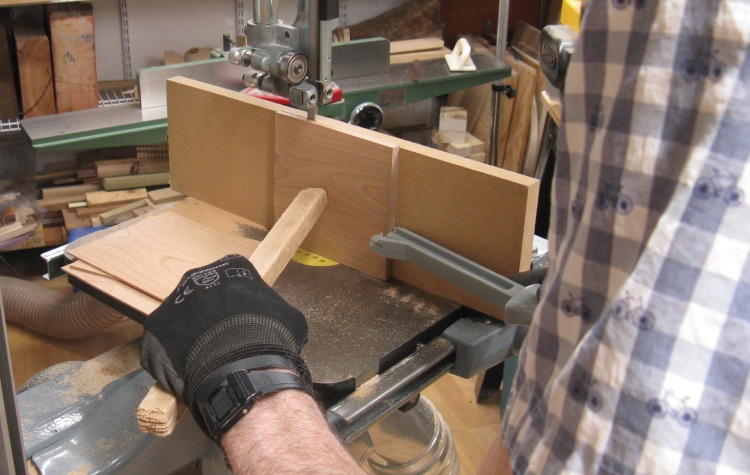 I wanted to use as much as possible of each Cherry piece while losing as few fingers as possible so I decided the Cherry would need to be clamped in place so it didn't have to be hand-held.