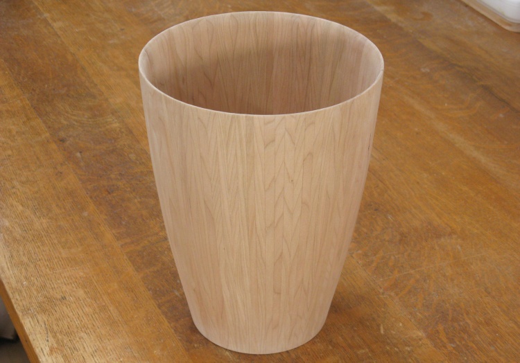 In addition to the shape, I liked what looked like fine vertical laminations. An image search revealed that this was a Bamboo wastebasket so the laminations were sort of part of the manufacturing process, and something that is necessary to make any larger Bamboo woodwork. The Walnut color isn't usually a feature of Bamboo but I hear stains are a thing.